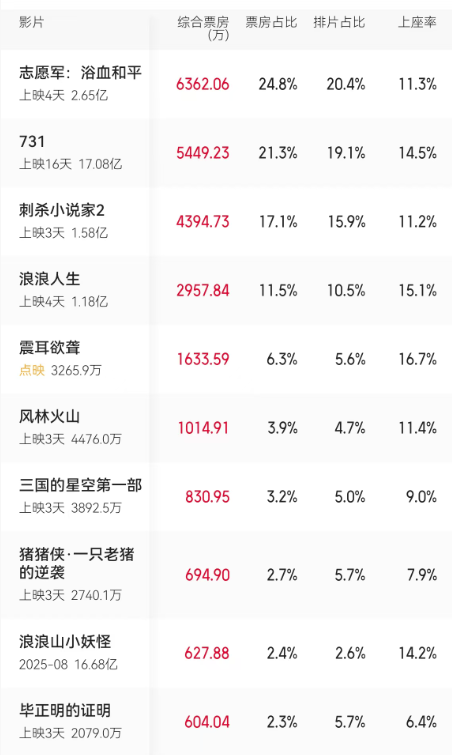 剩下的国庆档新片,从排片占比到票房占比全部输给《731》,特效精良、创作诚意满满的《刺杀小说家2》上映3天票房仅1.56亿,预测最终票房低于五亿,想回本有点难。