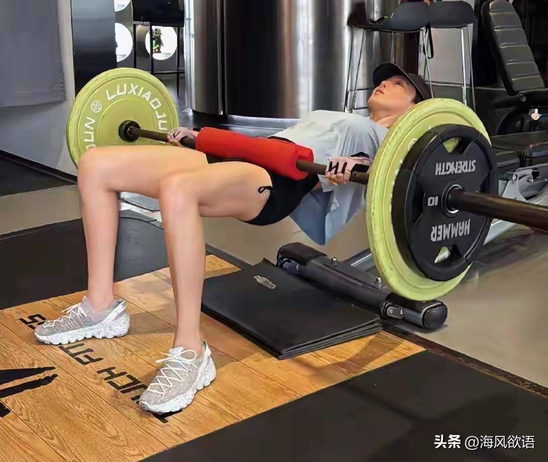 她配文说“不说了,都是泪”,这背后全是狠活儿!人家可不是摆拍,之前臀桥直接挑战100斤,这重量连不少男生都达不到。