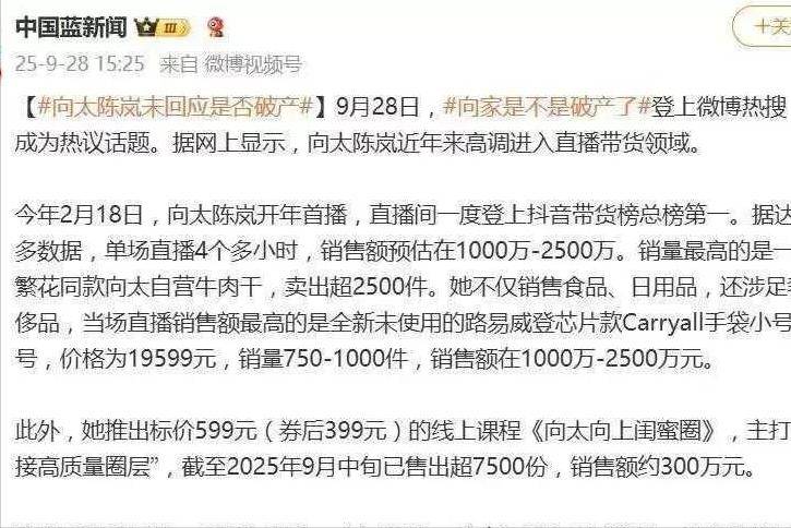 出轨事件热度还没有过,结果向家又一次爆出了大瓜,竟然被传破产了。