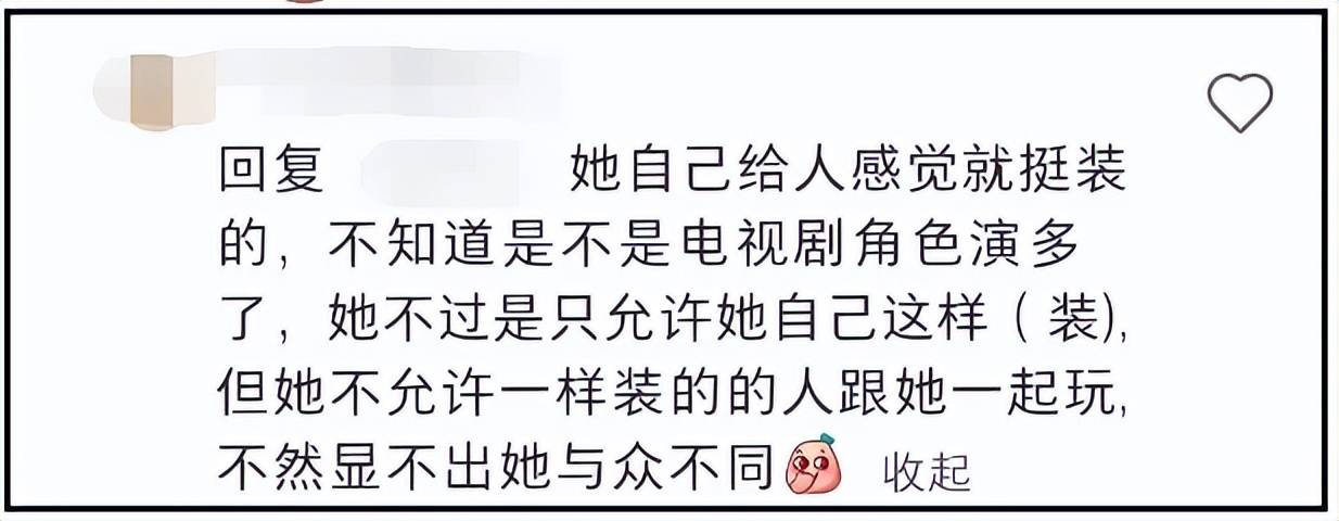 温峥嵘的这番言论立刻引发猜测,不少网友认为,她口中所指“装的人”,可能是虞书欣。因为她在生活中说话一直很“嗲”,也经常被诟病喜欢晒名牌的包包,还吐槽过赵小棠的穿搭。