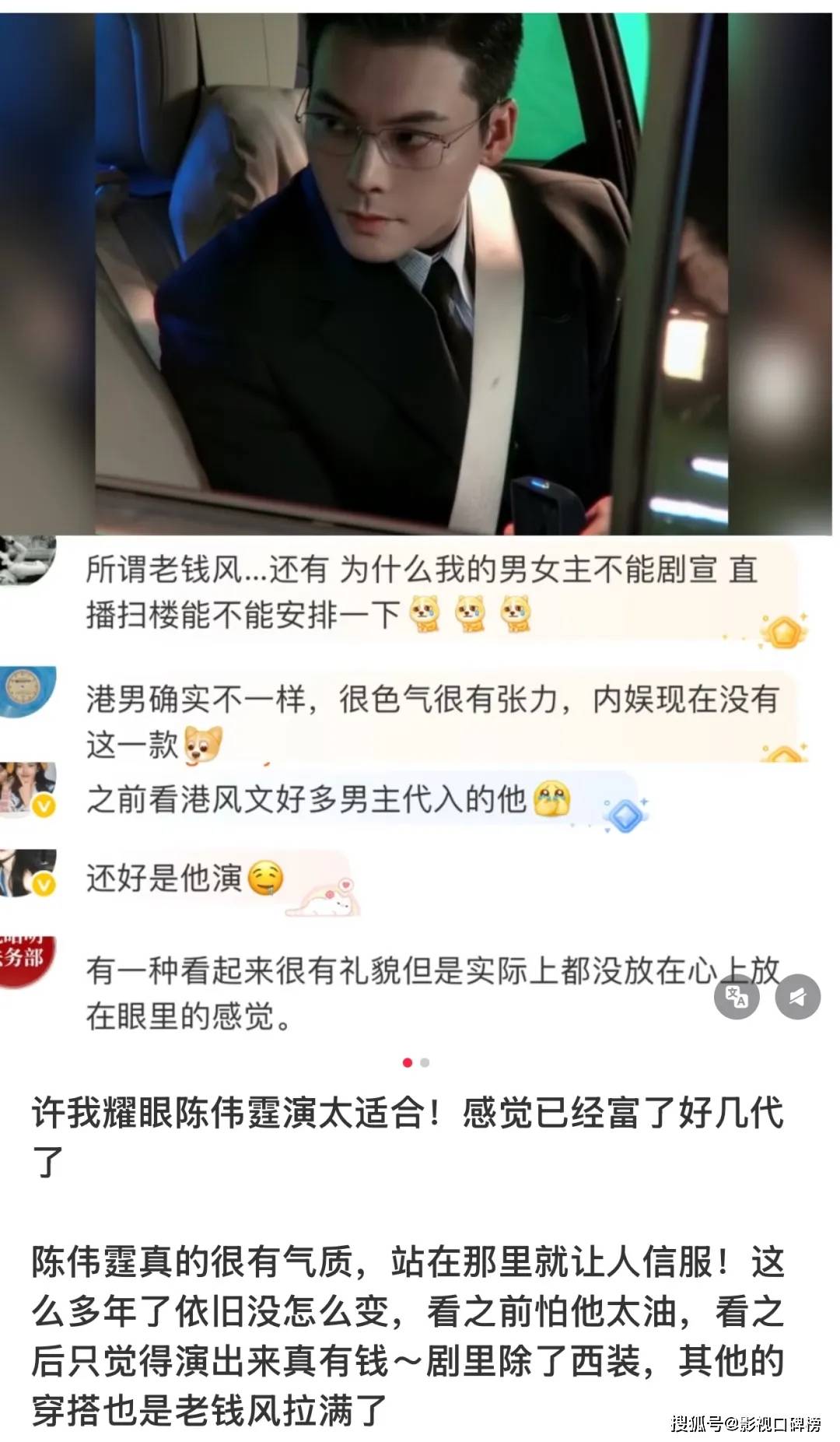 那么除开赵露思这个不可控的变量之外,让更多观众们感到惊喜的是陈伟霆再度出演的这款新霸总沈皓明,网友取其谐音调侃为“好命哥”,如今是好评如潮,观众纷纷惊呼陈伟霆的权威真是后知后觉。这角色要不是陈伟霆来演,可真没这个味儿。
