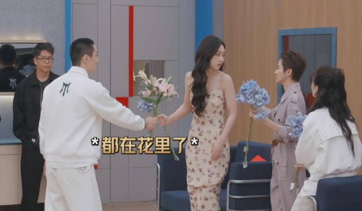 当时两队在等待管乐反选的时候,陈小春非常暖心地给几个姐姐献了个花。