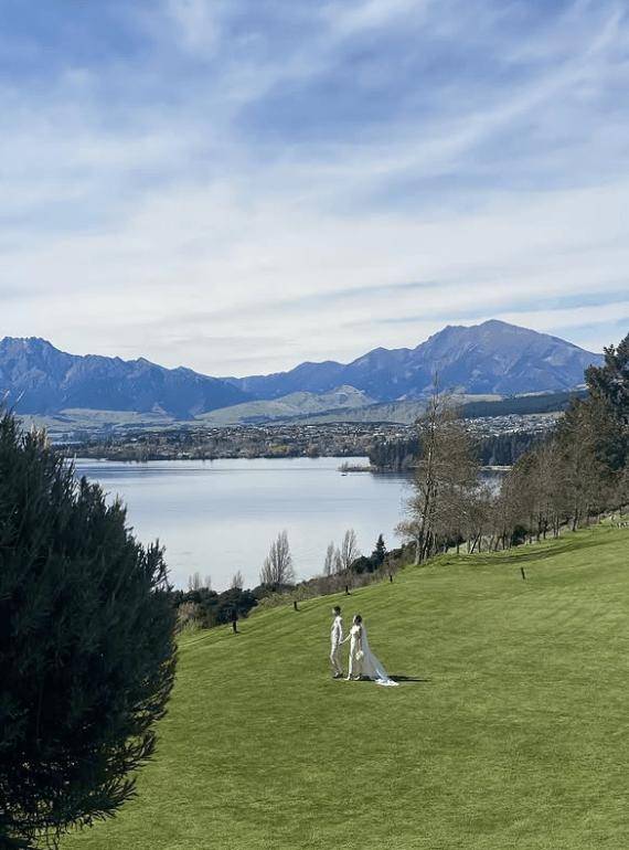 从照片中可见,婚礼在国外举行,现场有大片开阔的草地。胡定欣首批发布的婚照共五张,包含切蛋糕、手牵手等温馨画面,之后她又加码晒出更多婚照,既有自己抱着老公的正面照,也有老公从身后环抱她的超闪合照。