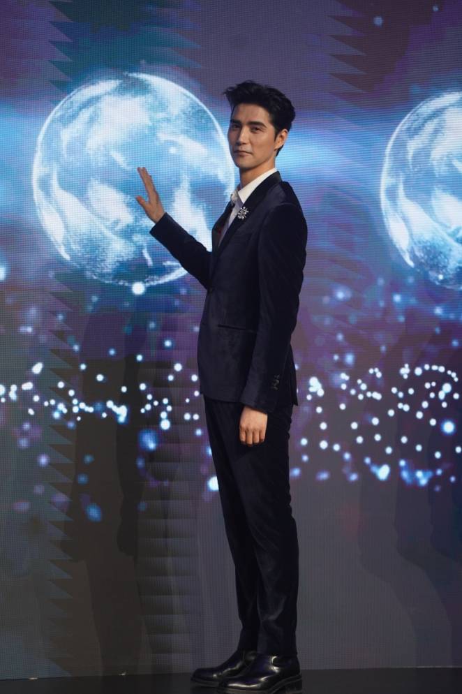 阿云嘎则是黑色西装LOOK,身姿挺拔,帅气十足。