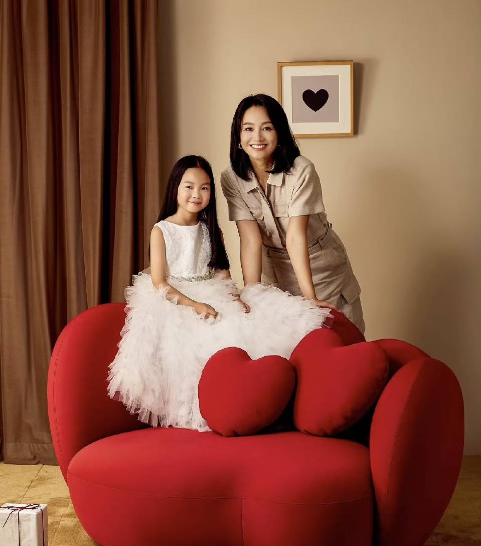 朱丹和女儿拍时尚大片氛围温馨。