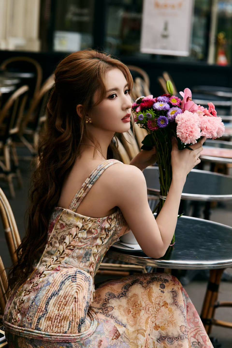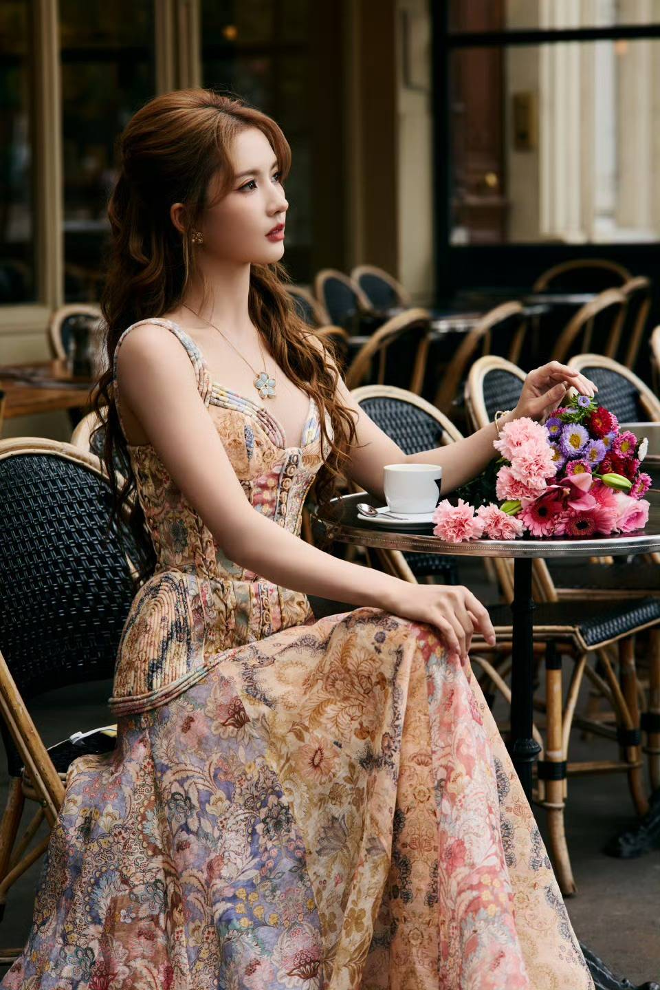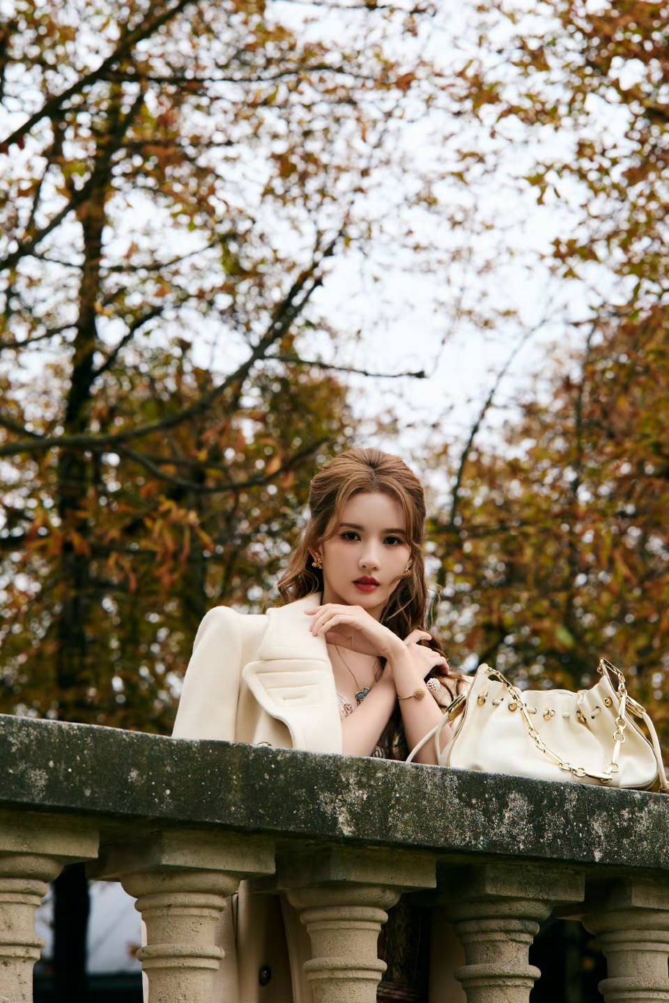 搜狐娱乐讯 10月7日,刘些宁在巴黎时装周的造型释出!印花复古长裙在落叶间一飘,氛围感直接拉满!