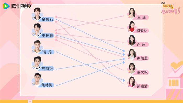 徐如蓝和王乐晨成为了勾勒第八季恋爱关系网的两位核心人物,也因此,围绕他俩或者他俩延伸开来的三角关系成了节目组最大的看点,这从首轮被公布的心动连线便能看出,四位男嘉宾选了徐如蓝,四位女嘉宾选择了王乐晨。