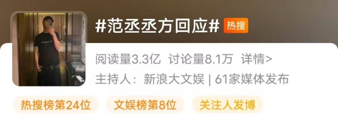今天,娱乐圈发生了一件大事情,范冰冰的弟弟范丞丞被传出了恋情,一时间火上了热搜,并且榜单有多个话题都与此事相关,迫于舆论压力,#范丞丞方回应了传闻。