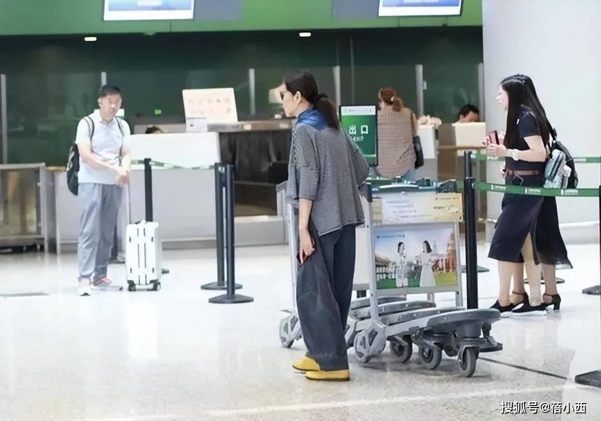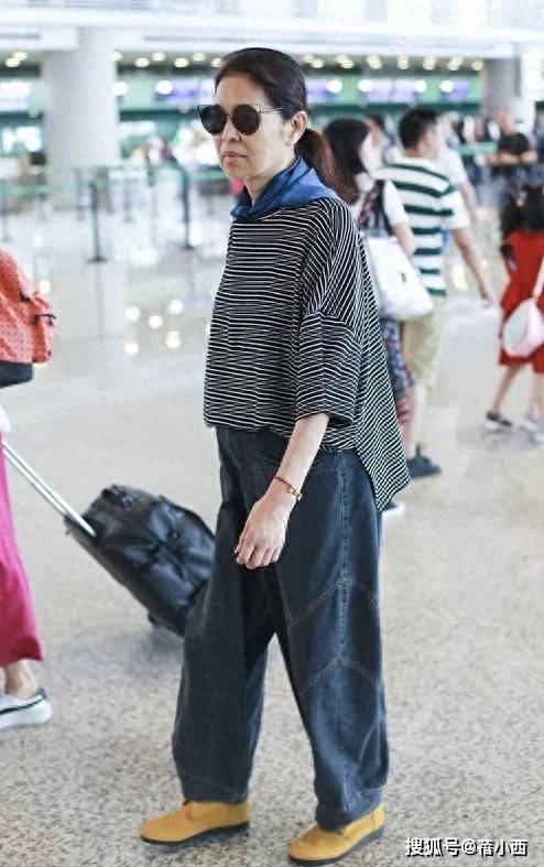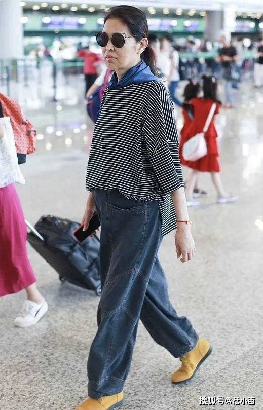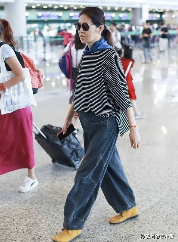 原创 倪萍瘦身后真洋气,穿条纹T恤+阔腿裤走机场,戴猫咪墨镜不像66岁