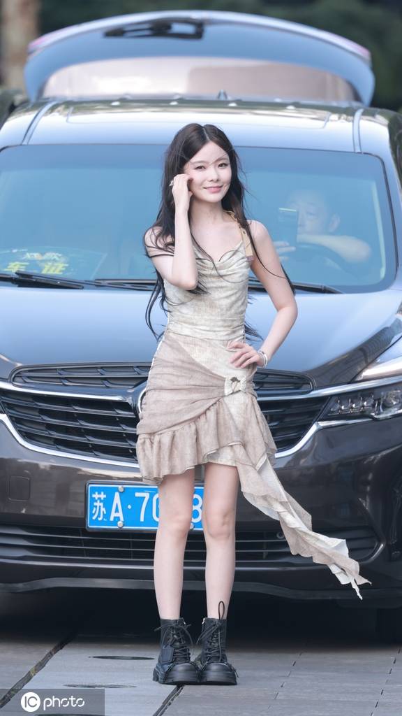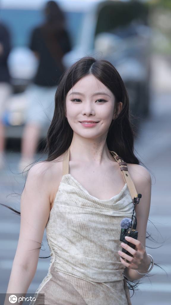 陈卓璇穿吊带连衣短裙现身录制打歌2025