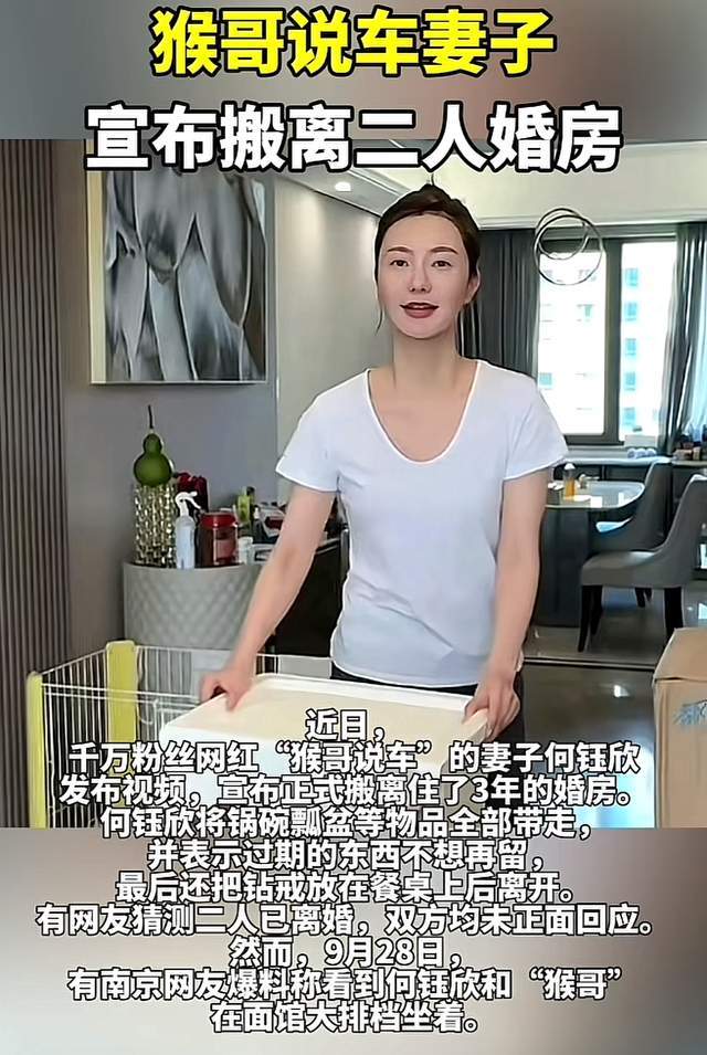 10月8号下午,猴哥说车与何钰欣正式官宣离婚,两人分别于视频账号上分享最后一段视频。