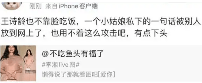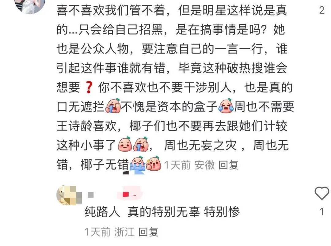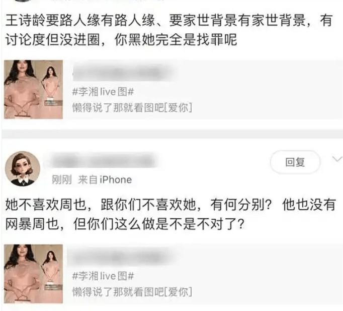 紧接着又开始出现了不少水军心疼王诗龄,说她也不进圈子,无辜被黑被攻击才下头呢。