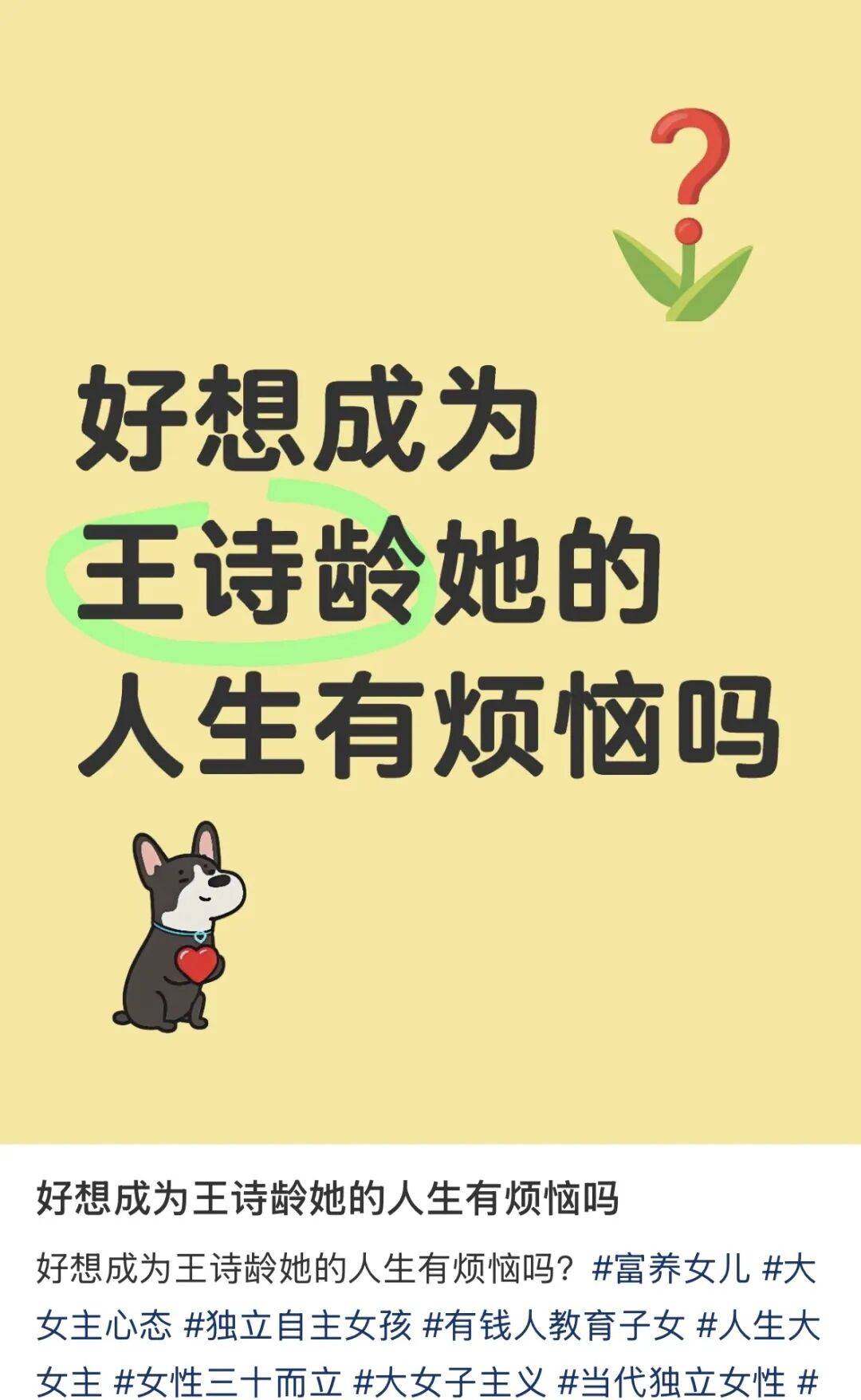 她又给王诗龄立了一个人人羡慕的人生设定,一时间想当李湘闺女和想变成王诗龄的比比皆是。
