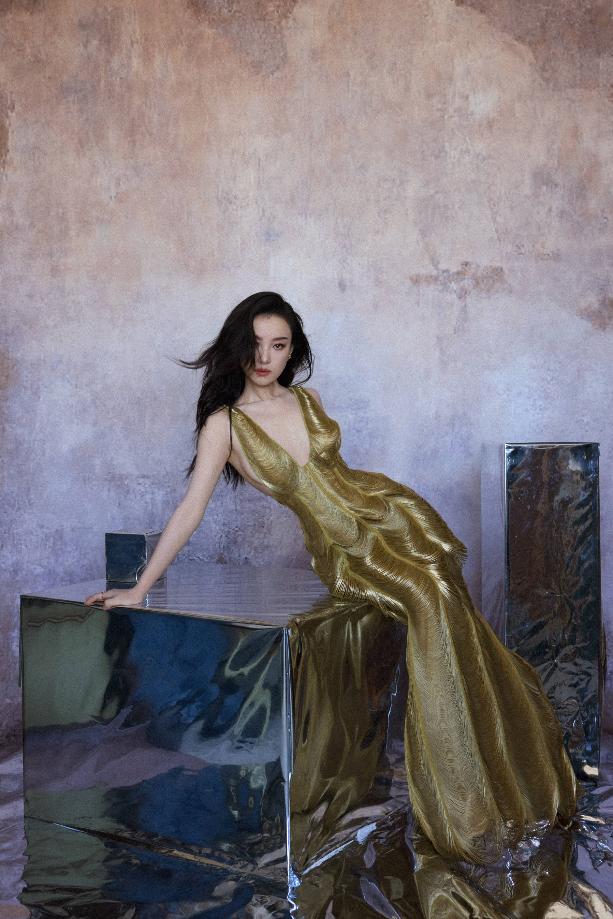 搜狐娱乐讯 近日,一组倪妮穿金色深V长裙的美图曝光。