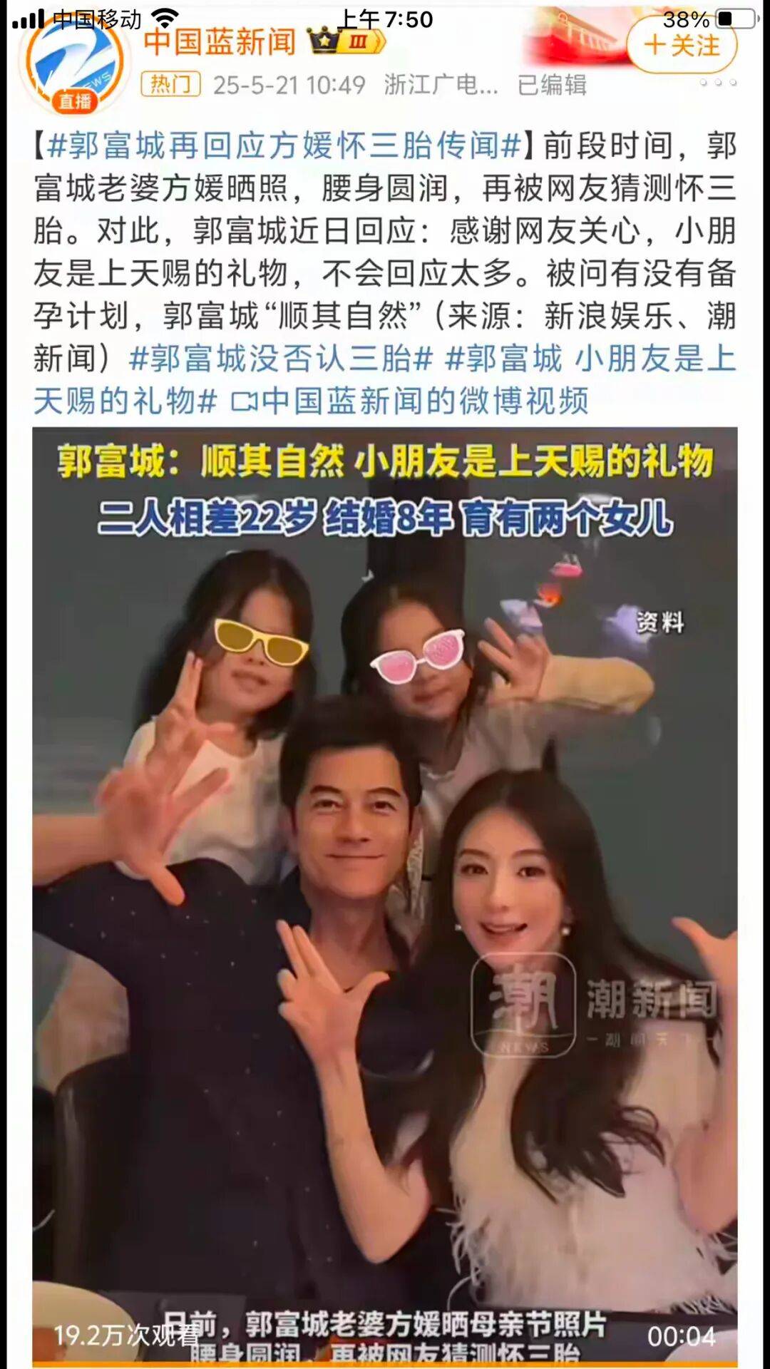 前两天不是一直有传言说郭富城三胎生子吗?