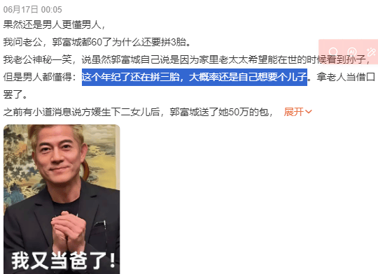 就这郭富城还忙三胎,很难不被评价一个“拼”字。