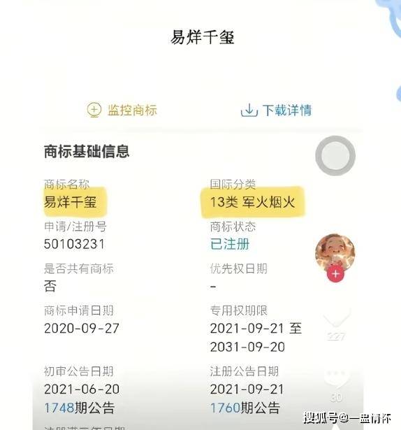 像易烊千玺,王嘉尔他们注册的商标类别底下,都有这个13类军火。