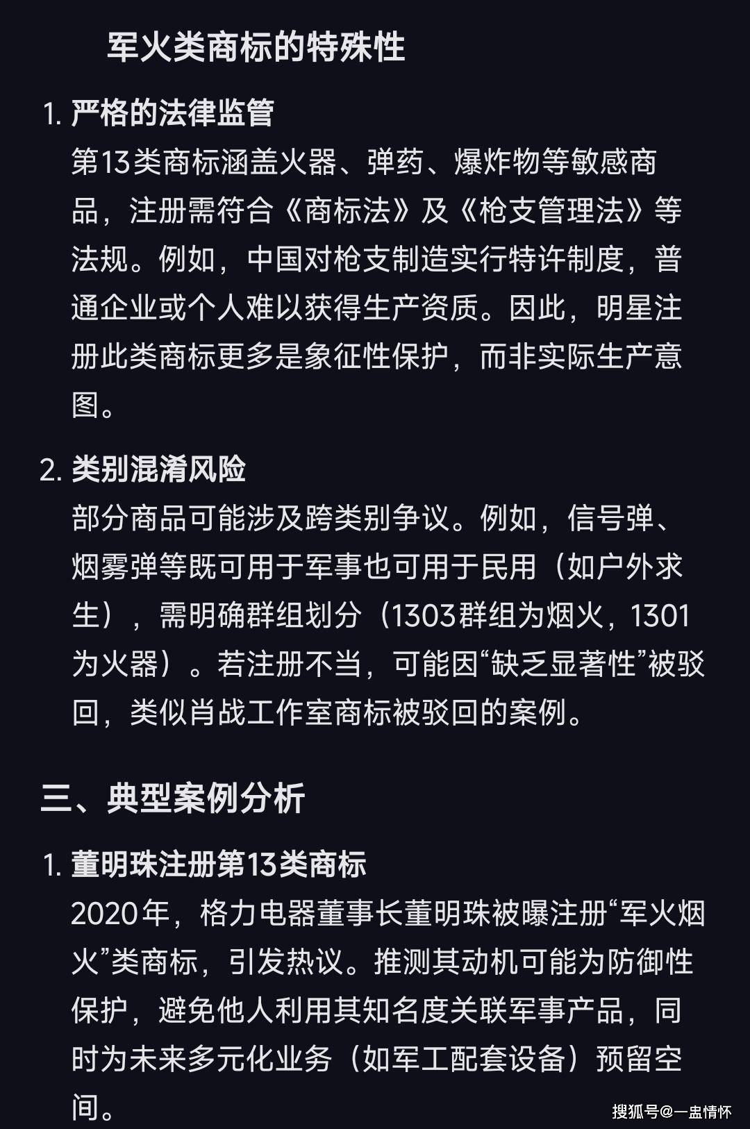 而且明星为了防止军火类商标被抢注,可能导致消费者误认或关联负面事件,损害明星声誉,才会注册这个。