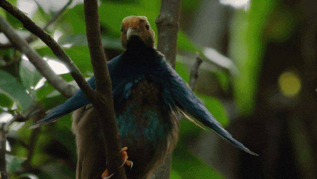 当阳光穿过热带雨林的层层树冠,一场由色彩主导的生存大戏悄然上演。幡羽极乐鸟随着光影变换调整求偶舞姿。