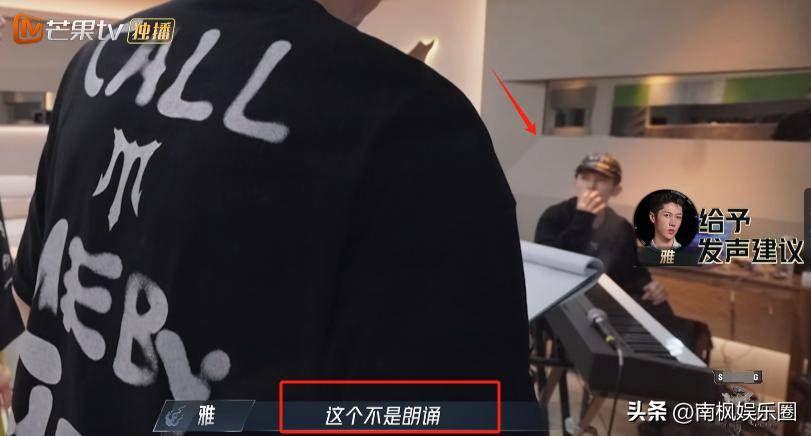 不会唱不会跳提着脑袋就是上,我看他是比较想唱rap的,所以抢着与梁龙合唱rap,结果被雅当场说“不要朗诵”。