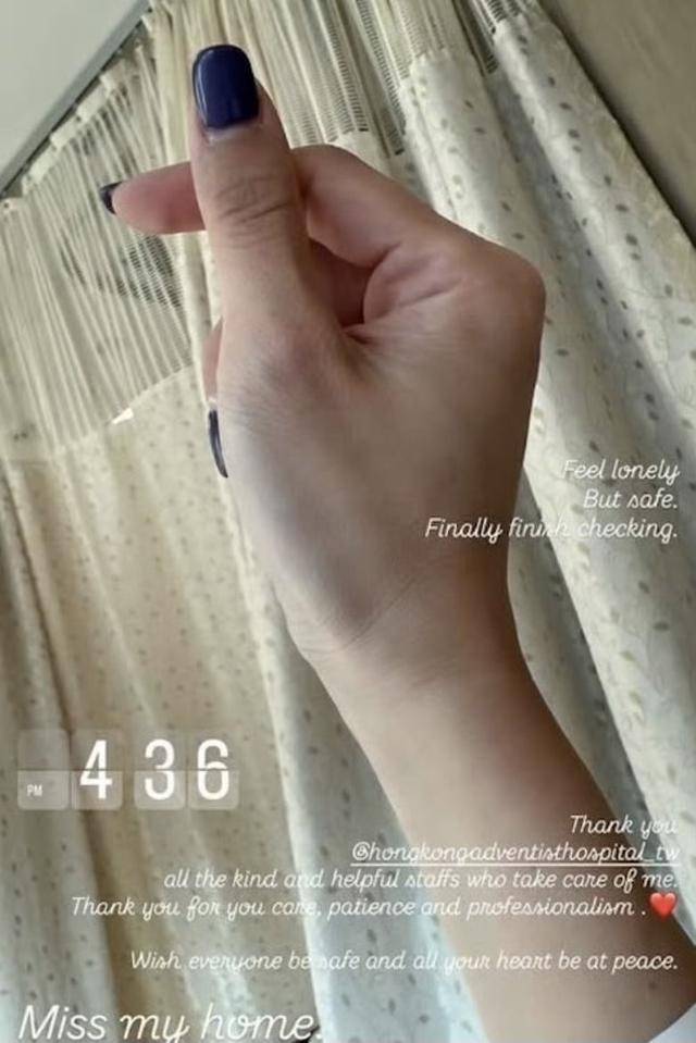 她举起右手做了个比心的手势,手上还戴着病人条码,显然吕慧仪的手腕很细,相信近段时间也是瘦了不少,因此网民们都很心疼她。