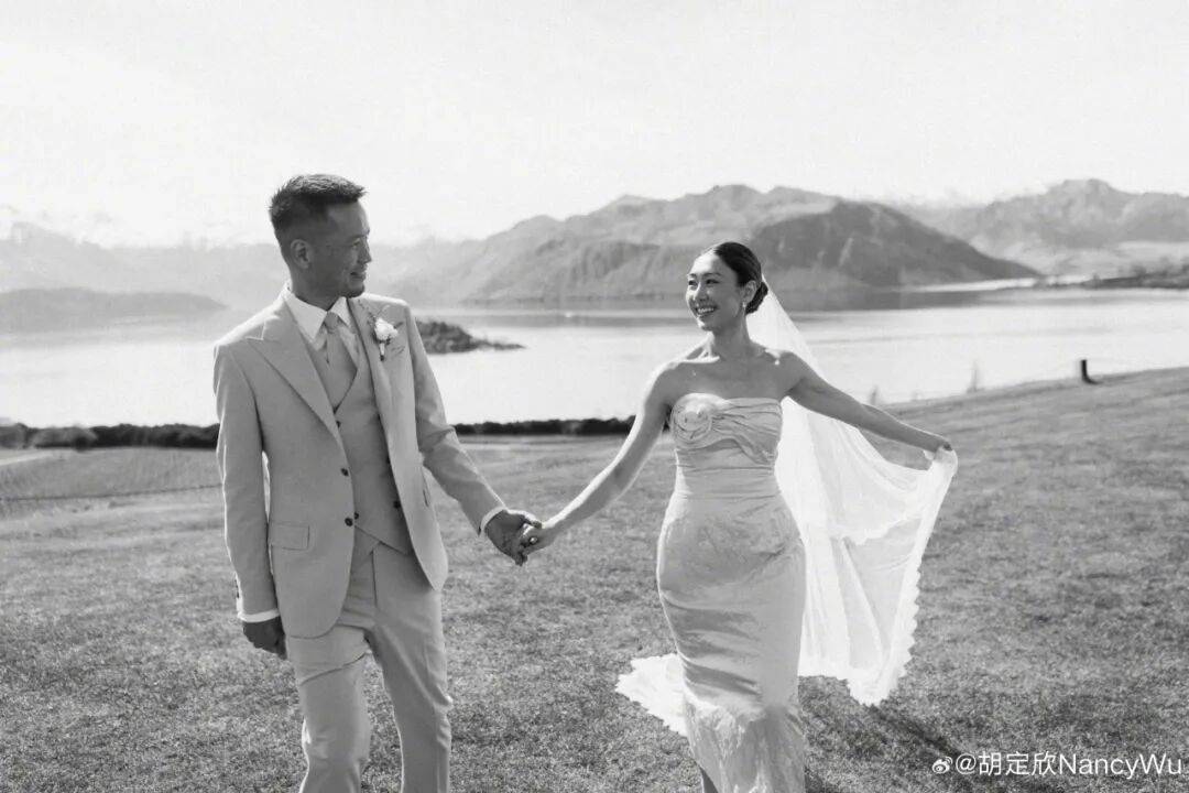 10月6日,女演员胡定欣晒出婚纱照官宣结婚,“我们结婚了