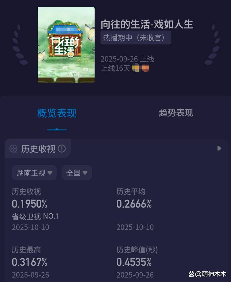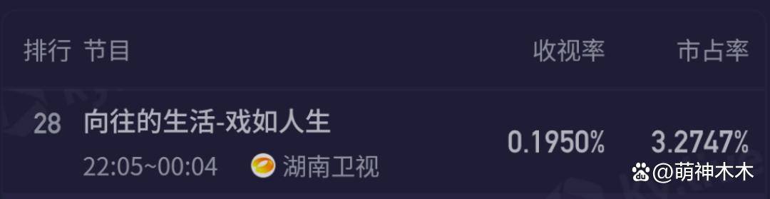 目前最新一季《向往的生活》直播收视率仅剩0.195%。