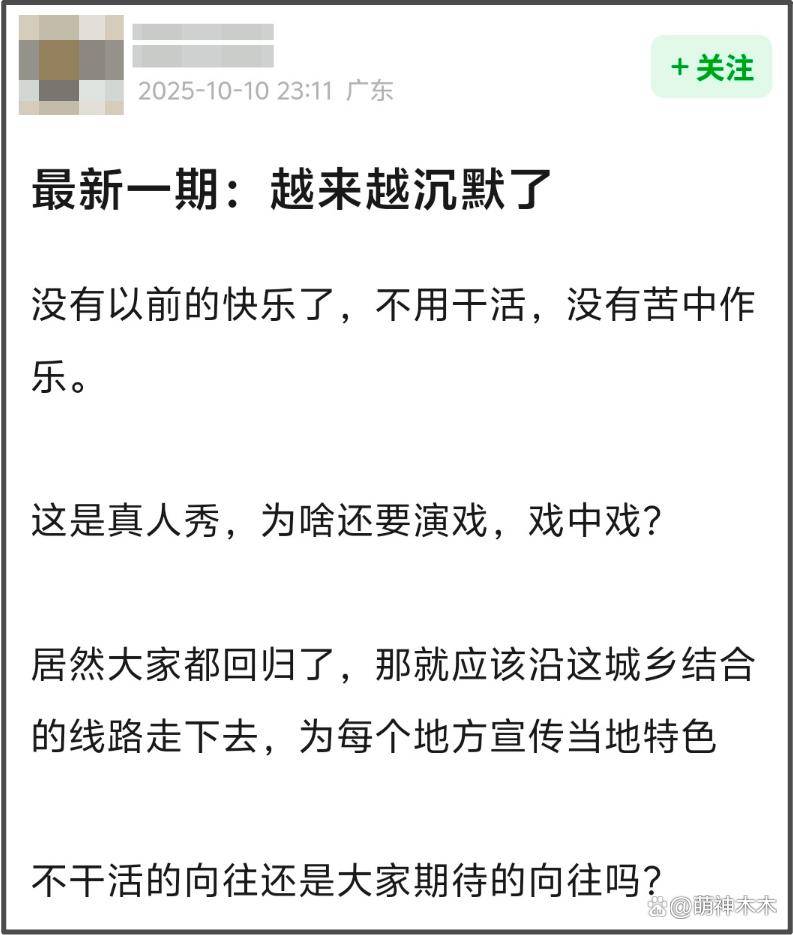 不少网友忍不住质问:《向往的生活》到底在干嘛?是在卖惨吗?节目仿佛被网络舆论影响,拍不出原有的魅力,不如干脆停播。