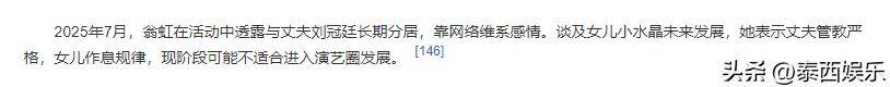 离婚后的翁虹消沉了一阵子,直到 2007 年在宴会上遇到了现在的丈夫刘冠廷。