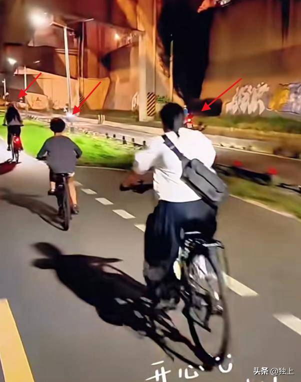 每个人都有一辆车,汪小菲骑的快打头阵,一旁是马筱梅,汪小菲也要护着她,中间的是汪希箖,他跟在马筱梅后面,汪希箖的山地车是儿童款,从背影看他骑的很专业,一点都不生疏,小杨阿姨在最后垫底。