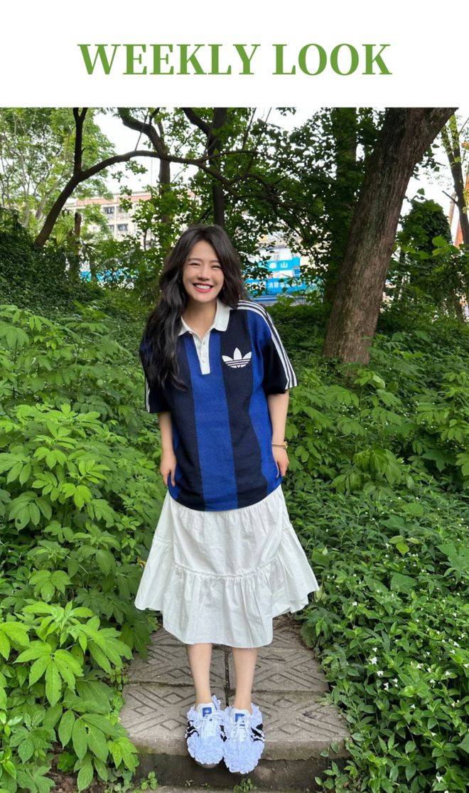 她的穿搭也和她状态一样,走的是“自然放松”路线。露肩T恤配牛仔裤、波点衬衫配牛仔短裤,都是基础款但搭得特有氛围。她不追复杂设计和高调色彩,就是用最舒适的状态穿出自己的感觉,被网友称为“白月光回国”。