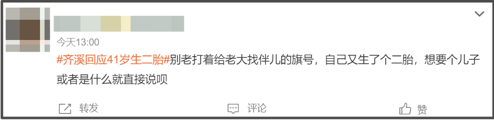 正如网友所说,如果齐溪大大方方说因为喜欢孩子所以想多生几个,大概率是不会遭到质疑的,非要提一句觉得老大孤独,就让网友觉得她在找补,越看越觉得像是找借口掩盖拼儿子失败。