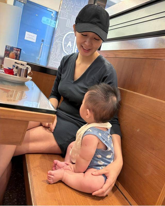 这次麦明诗在拍照时,一如既往的避开宝宝的正面,但从宝宝的侧面及背面看,小家伙长得圆润可爱,一看就是被照顾的很好。