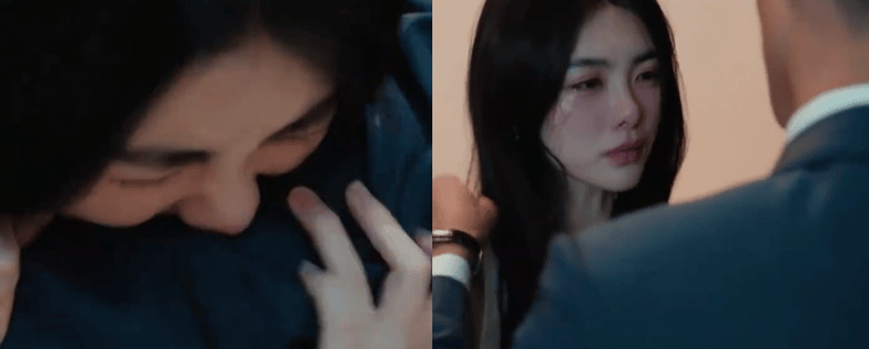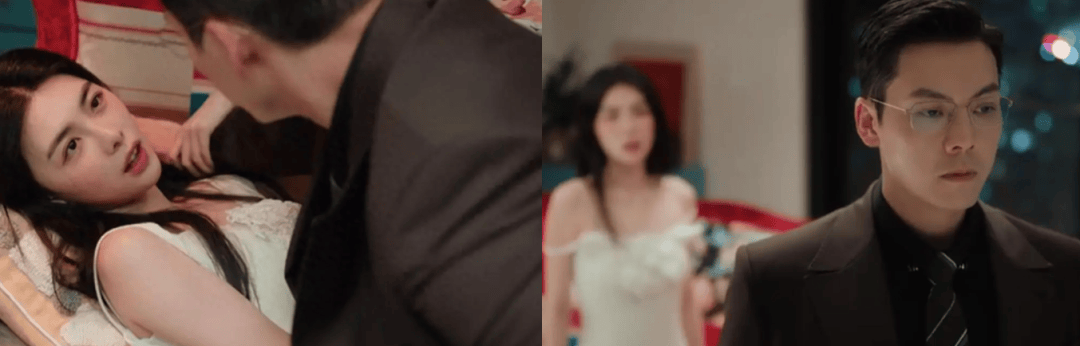 肩带滑落那场戏,她没说一句话, 泛红的眼眶和微颤的肩膀,把不甘与脆弱全演透了,和对方对视时的眼神,又透着试探与依赖。