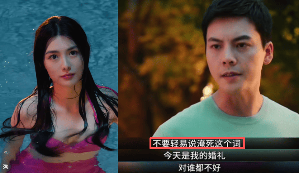 泳池戏里, 她穿泳衣从水里出来,光影下的冷艳里藏着脆弱。
