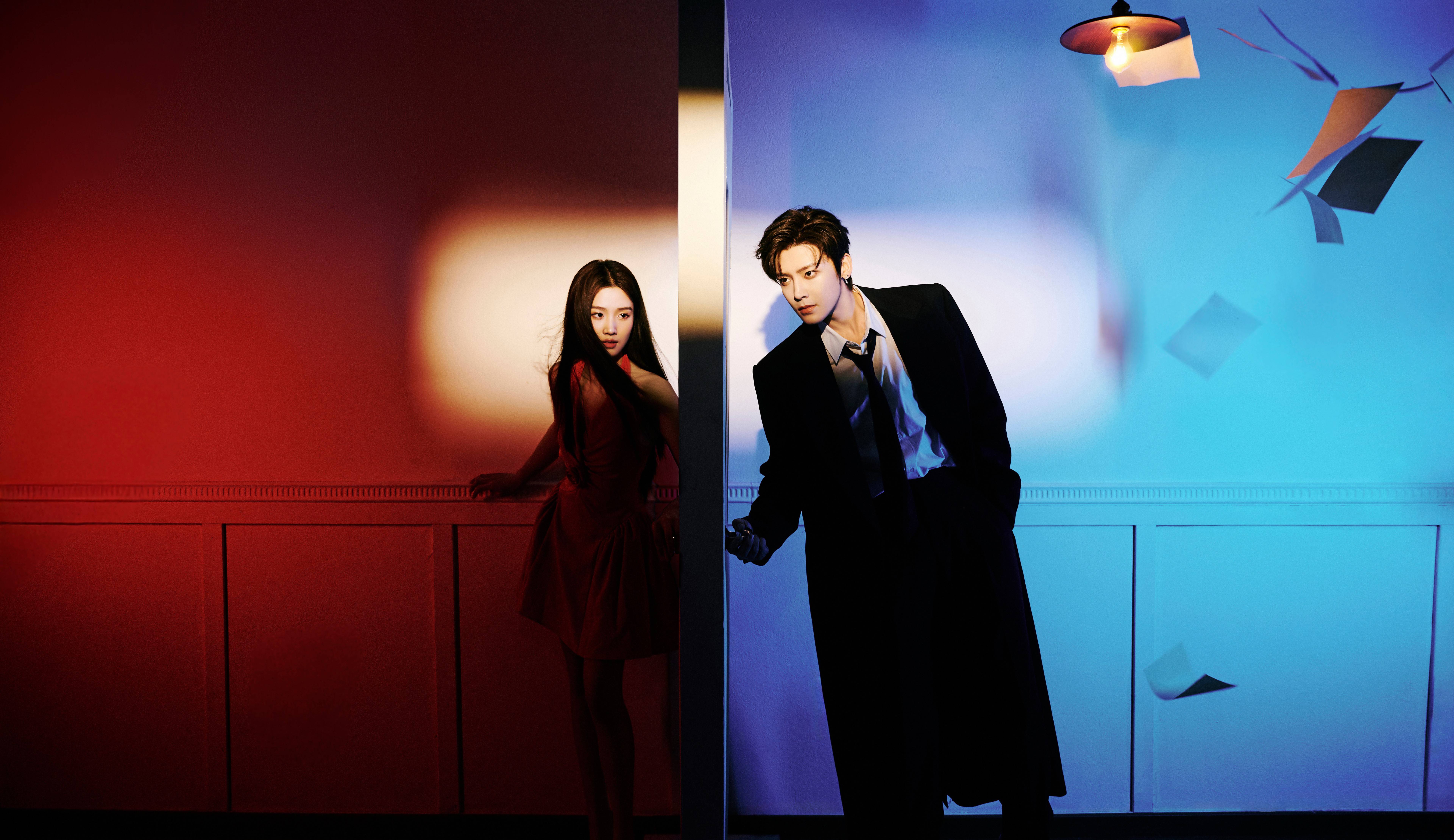 卢昱晓和侯明昊站在墙壁两侧,故事感十足。