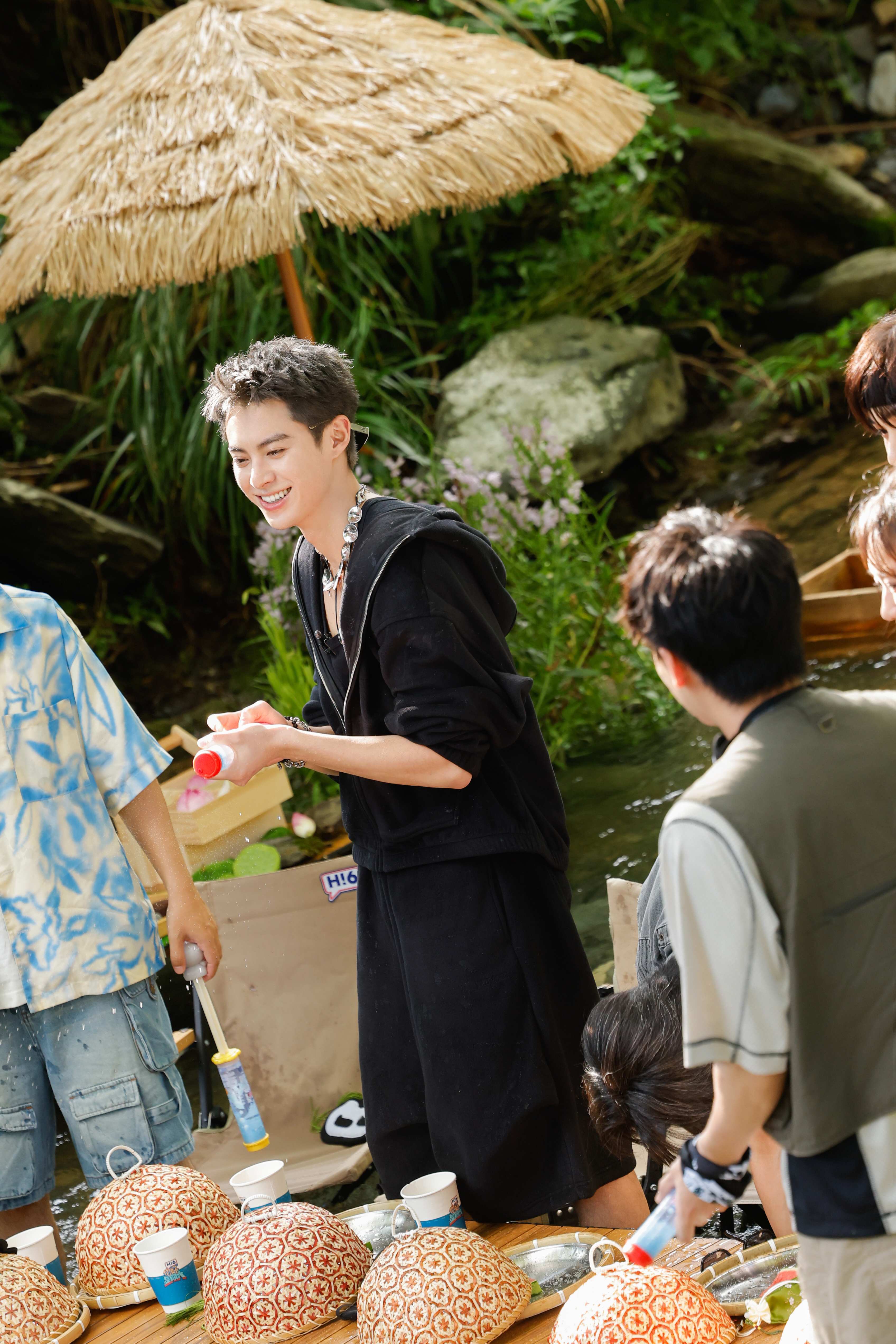 接下来的升级版“321看这边”游戏,在熟人局中演变成3V3的泼水对决。“重出江湖”的王鹤棣和檀健次前两个回合都是开局即定出胜负。而后逐渐找回感觉,每一回合都历经多轮进攻才决出结果,檀健次甚至产生条件反射,明明自己是获胜方但仍习惯性拿起盾保护。而王鹤棣队的秦霄贤偷偷用水泼起了队友,王鹤棣则“有仇”当场就报,对秦霄贤发起泼水攻击。到了赛点局,王鹤棣更是将桌椅全部撤掉,众人泼成一团。