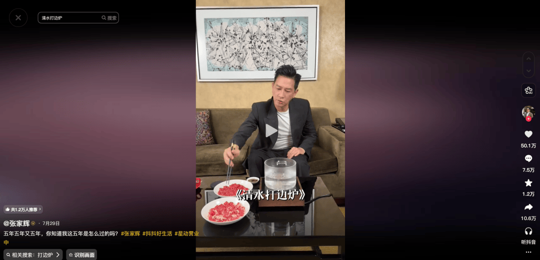 张家辉的第一条视频,就是玩起了自己「清水打边炉」的老梗。