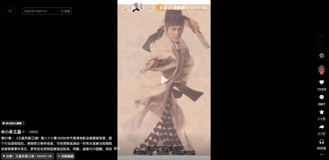 王晶更是专门开了一个「小看江湖」的系列视频,来讲这些内容。