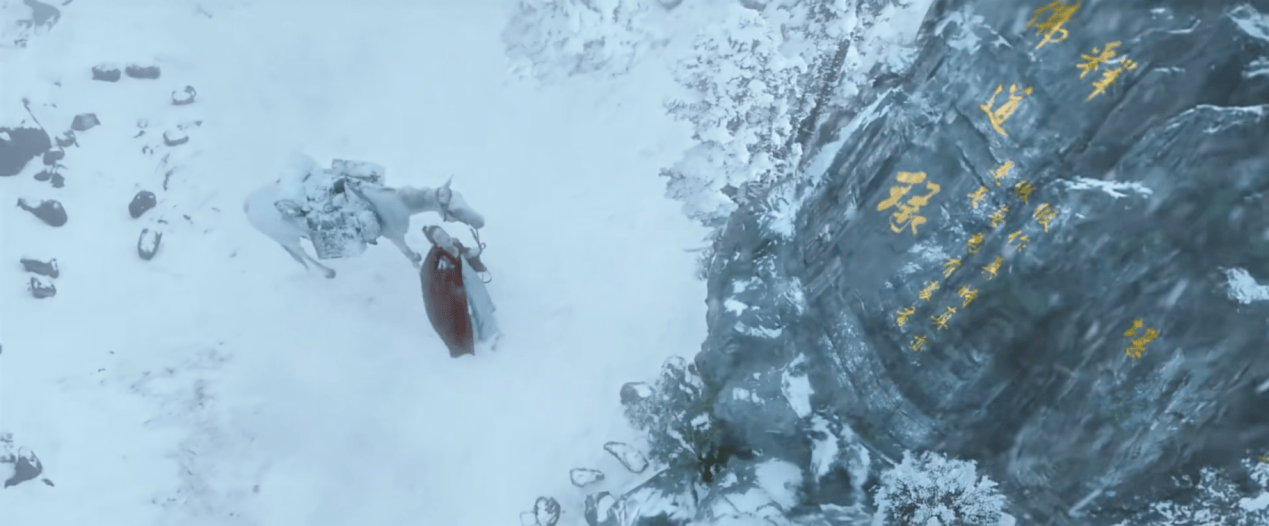 在电影的开头,我们就看到了贾宝玉出家的情节,在一片白茫茫的雪景中,贾宝玉捧起一株草,流下了眼泪。