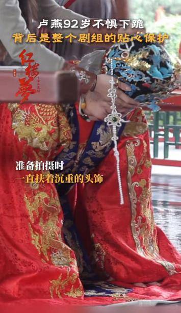 戏外的用心,成就了戏里的精彩。这场戏中饰演贾母的老戏骨卢燕,尽管年逾九旬且腿脚不便,仍坚持亲身上阵完成跪拜戏份。