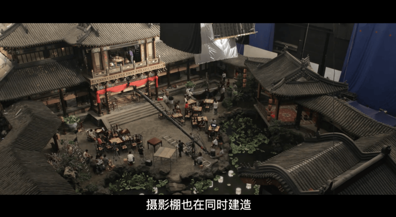 剧组在大观园的建造置景方面投入巨大精力,建造了包括怡红院、潇湘馆、沁芳闸桥、省亲别墅等庭院楼阁40余处。在刻画楼体细节上,还原了传统建筑的榫卯结构;园林景物精雕细琢,采用落叶与灰尘营造真实质感;各类门窗使用特制中式红漆进行喷绘,呈现极致东方色彩美学。