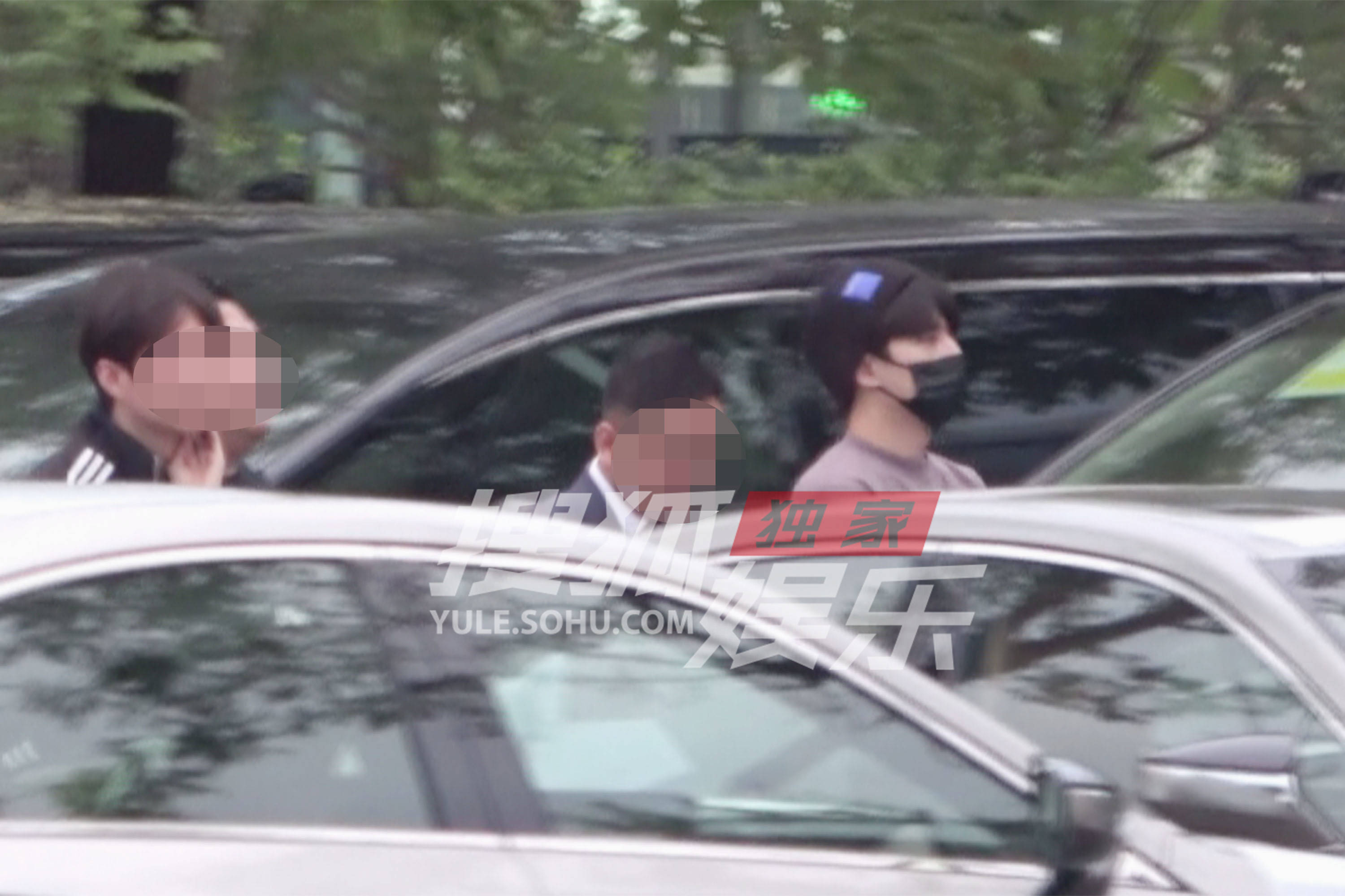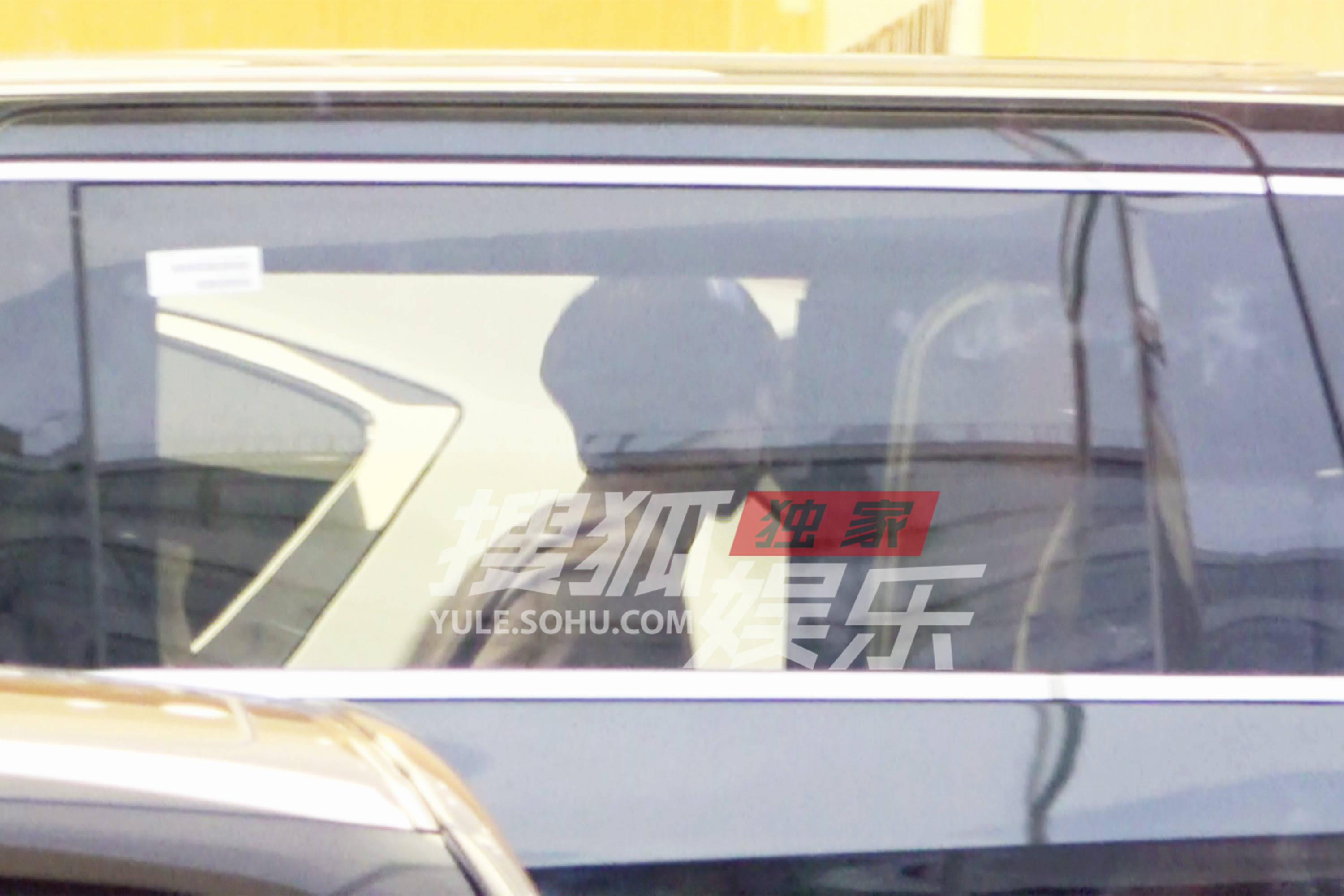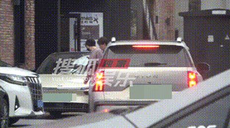 杨洋在商务车后座体验后下来。