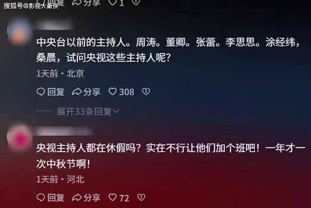 央视中秋晚会向来以大气、典雅的风格著称。主持人阵容多是任鲁豫、鲁健这类台风稳健、专业功底扎实的央视熟脸。谢娜的名字出现在今年的主持名单中时,网友的质疑声瞬间炸开。“她的风格和中秋晚会根本不搭”“有更合适的主持人,为什么选她?”不少人直言“有谢娜就换台”,抵制情绪十分强烈。