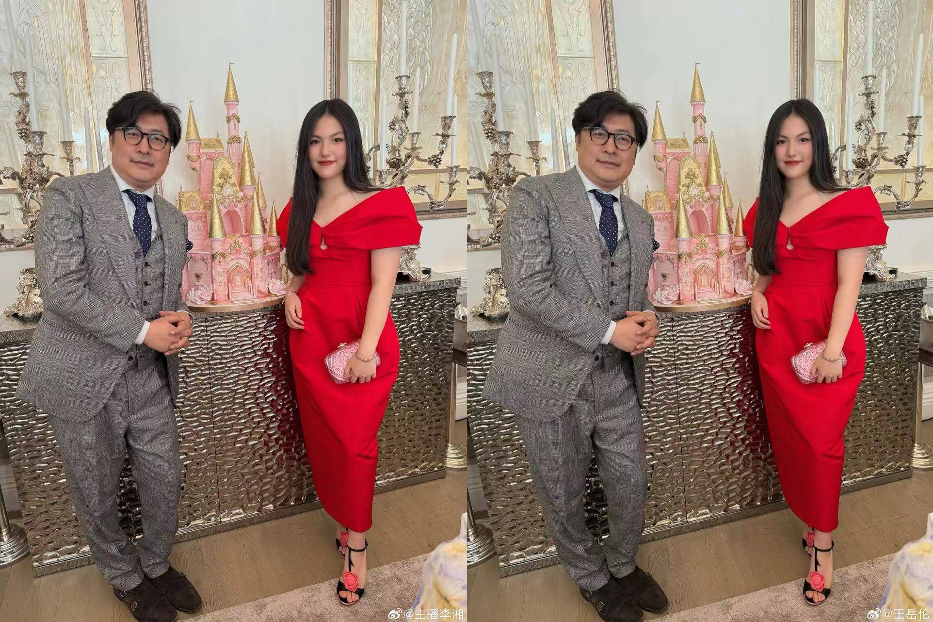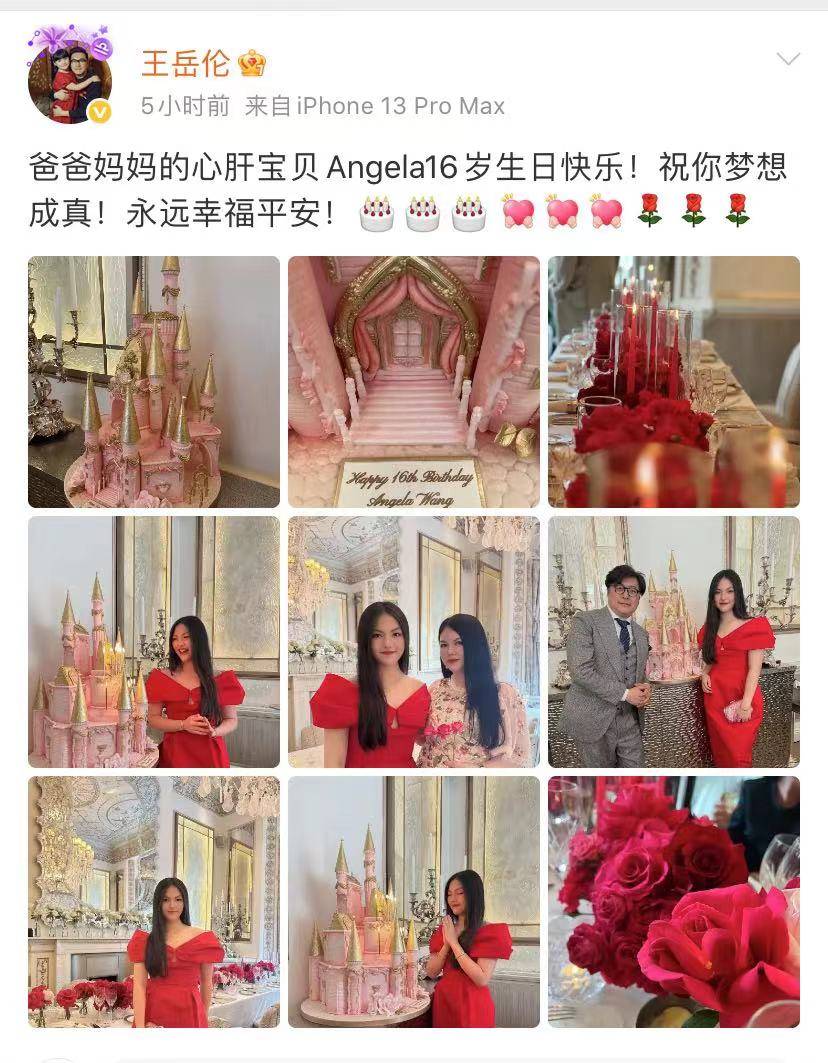 爸爸王岳伦看起来还是很年轻,估计特意为女儿庆生染了头发,穿上一身西服,绅士派头十足。