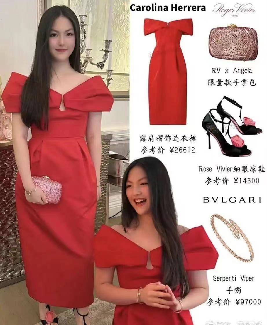 网友发现王诗龄全身名牌,加起来价值十多个W,红色礼服价值2.6万多,高跟鞋都1.4万多,还有金手镯也是价值近10万,限量版的包包,估计也是价值不菲。