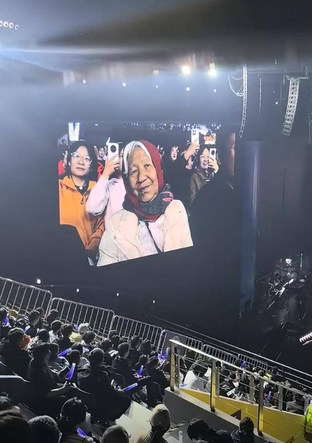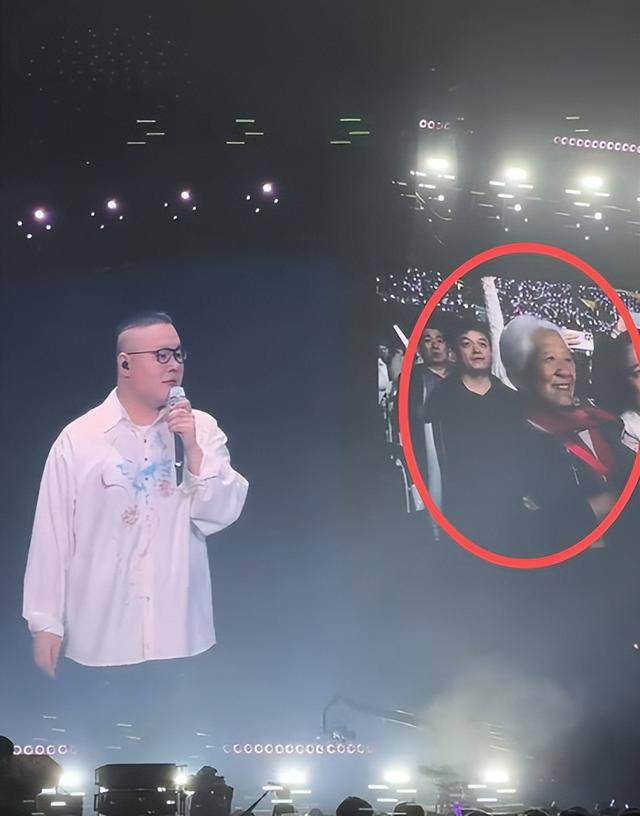 演唱会开始后,老人满头白发梳得整整齐齐,眼神却亮得很,她看到台上的儿子,应该是感慨万分、倍感骄傲吧。