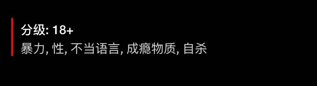 网飞将其定为18+,因为包含暴力、性、不当语言、成瘾物质、自杀等元素。