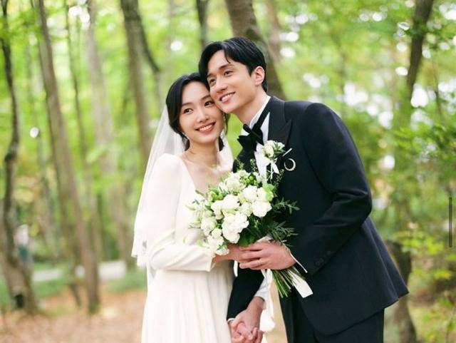 两人的婚礼,也设有很多仪式。其中,有几张在户外森林拍的婚纱照,更是获得了外界的一致好评。
