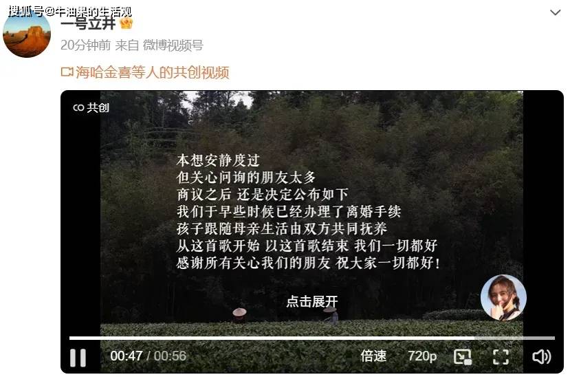 万万没想到,李亚鹏海哈金喜官宣离婚了,10月14日,李亚鹏海哈金喜联合发布视频,宣布两人早些时候已经办理了离婚手续,孩子将跟随母亲生活,由双方共同抚养。